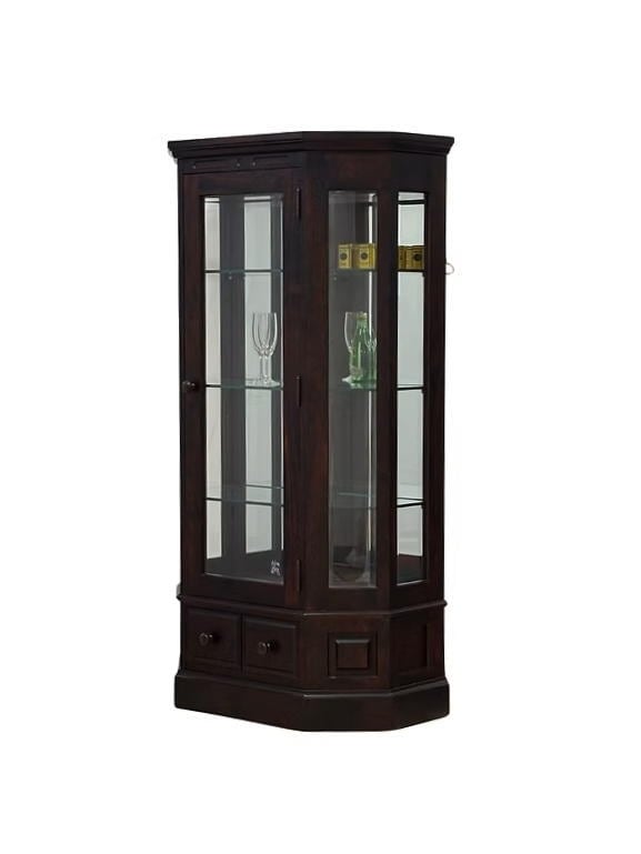 *伝統的な民芸調デザインが美しい「神居民芸 80L」。ガラス扉の奥にはお気に入りの器や小物を飾れ、重厚感のある佇まいが空間に落ち着きを与えるキュリオボードです。